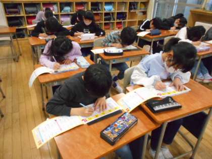 今日は、新しくもらった漢字ドリルを使って、新出漢字の練習をしました。「こく・ゆっくり」書くことを意識して、丁寧に書き進めていました。
