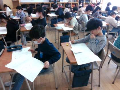 4年生最初のテストを行いました。一生懸命取り組む姿がとても立派でした。