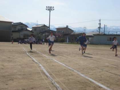 5年生最初の体育では、全クラスで50m走をしました。子供たちは去年の自分よりも速く走ろうと、全力を尽くしていました。