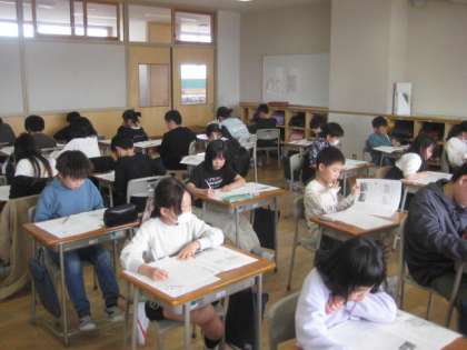 5年生になって初めてのテストをしました。子供たちは難しい問題も諦めずに時間いっぱい取り組みました。
