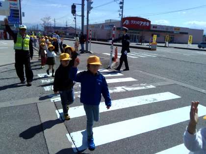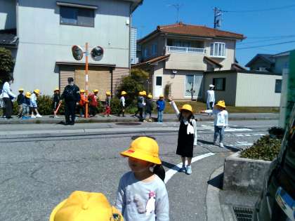学校の周りの道路に出て歩行練習を行いました。横断歩道や曲がり角等、危険な箇所の歩行の仕方を確認しました。学んだことを生かして安全に登下校をできるように繰り返し指導していきます。