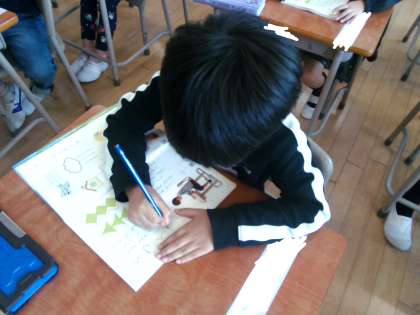 鉛筆の持ち方に気を付けて、はみ出さないようになぞり書きをしました。