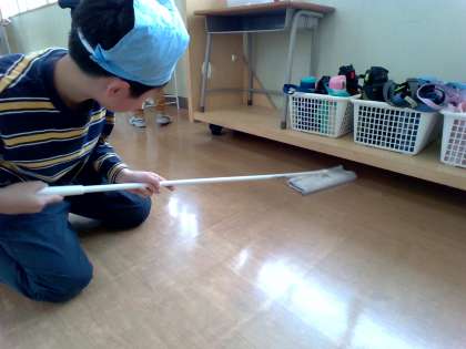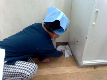 子供たちは、すみずみまで掃除をしようと日々がんばっています。今日は、物置の下や、ロッカーの隅に汚れを見付けてぴかぴかにしていました。