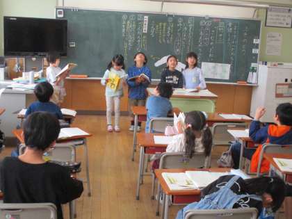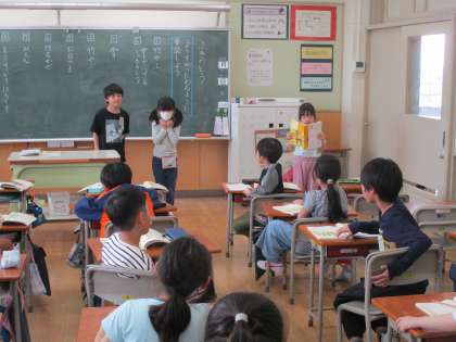 国語科「ふきのとう」では、様子が伝わる言葉を見付けながら、音読をしています。