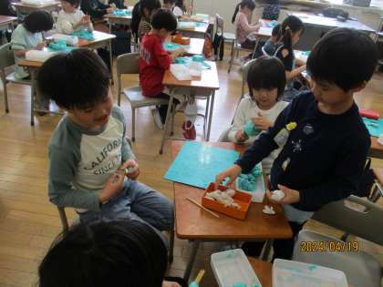 粘土を使った学習をしました。友達と協力しながら、つくりたい形になるように工夫して取り組みました。