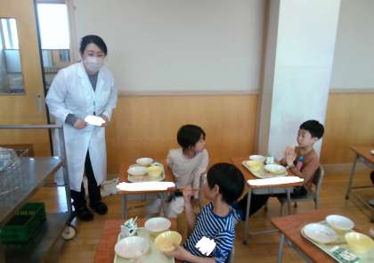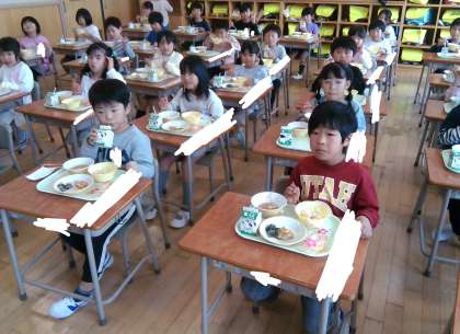 今日は入学をお祝いした献立の給食でした。からあげやちらし寿司等、子供たちが好きなメニューでした。「からあげ、おいしい!」という元気な声が聞こえてきました。