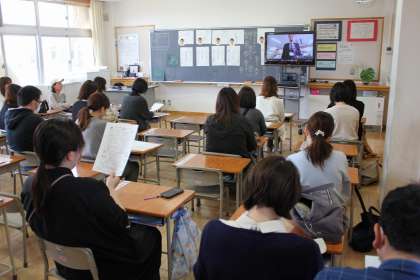 今年度のPTA総会は、大人数の移動の煩雑さの解消と、多くの方の参加を可能にするため、初めて各教室とつなぐリモート開催で行いました。