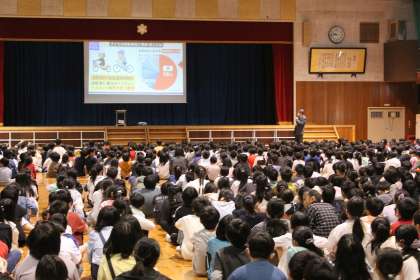 子供たちは体育館に集まり、生徒指導のお話を聞きました。