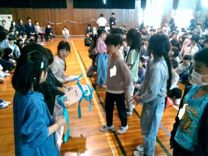 6年生の劇やじゃんけん大会等、1年生が楽しめるように考えられた出し物がありました。2年生からは、アサガオの種をプレゼントしてもらいました。