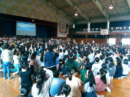 1年生の入学をお祝いする集会を行いました。全校でじゃんけん大会をしたり歌を歌ったりするなど、異学年との仲を深めることができました。