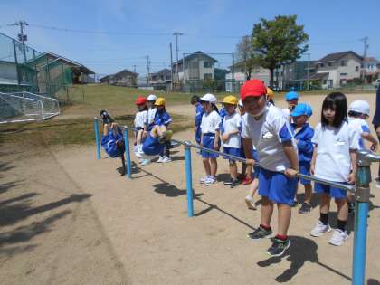 鉄棒を使って学習をしました。今日は、支え技です。最初は、難しくても、だんだんと慣れてきました。苦手なことにもチャレンジしています。