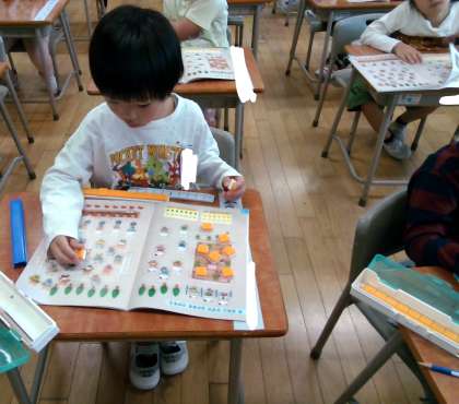 ブロックを使って、数のなかまを探しました。6〜10の数になるのは何なのかをみんなで確かめました。