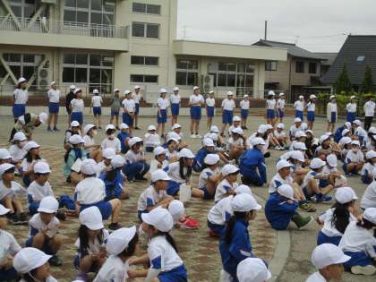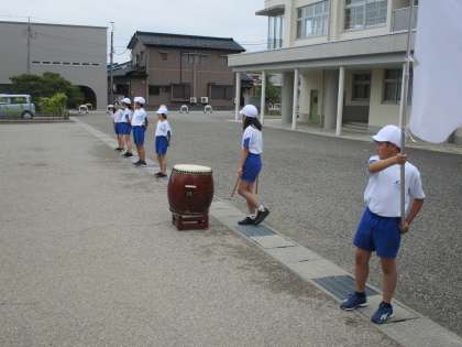 太鼓の音に合わせてエールの練習をしました。