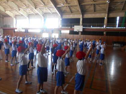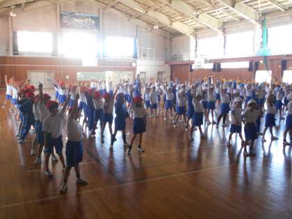 いよいよ運動会の練習が始まりました。2年生の競技の一つは玉入れです。ただの玉入れではなく、「ダンシング玉入れ」です。今日は、玉入れの前に踊るダンスの練習をしました。