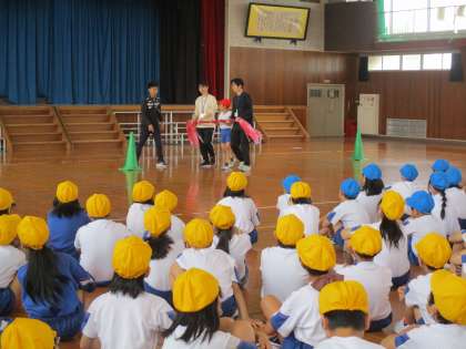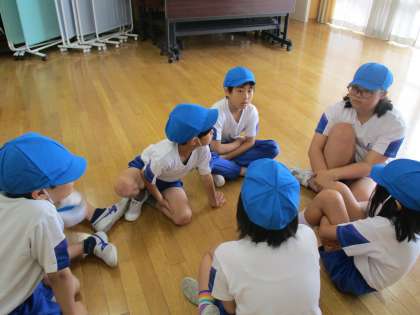 いよいよ運動会の練習が始まりました。学年種目「台風の目」の説明をした後、チーム決めをしました。作戦一つで勝敗が変わるということを全体に話したことで、どのような3人組を作ったらよいか真剣に話し合っていました。