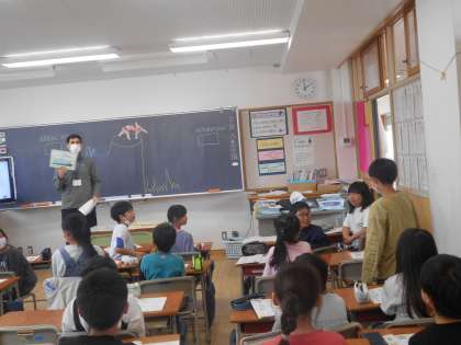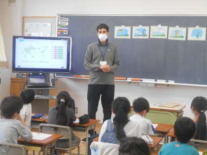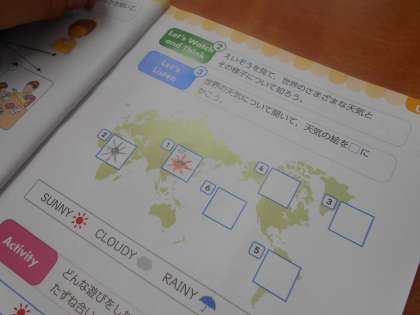 天気の言い方を練習しました。チームに分かれてゲームをしながら、楽しく天気の英語を覚えることができました。