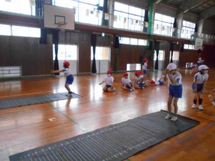体育の学習では、体力テストを行っています。この日は1クラスは「20mシャトルラン」もう1クラスは「立ち幅跳び」を行いました。去年より記録が伸びたことを実感している子が多かったようです!