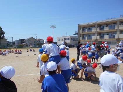運動会に向けて、今日は騎馬戦の練習を行いました。騎手の人も騎馬の人も、安全に気をつけながら一生懸命に頑張っていました。また、学年選抜リレーに出場する子供たちも、休み時間にバトンパスの練習を頑張っていました。
