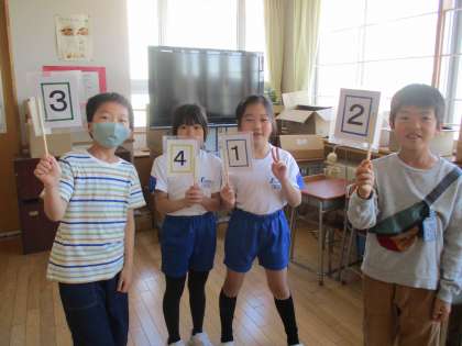 各団の代表者が集まり、くじを引いて綱引きの予選の組み合わせを決めました。予選は、赤団対黄団、白団対青団で行われます。どの団もやる気に満ちあふれています。来週が楽しみです。