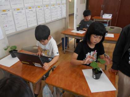 また、クロムブックで苗の写真を撮りました。これからの成長が楽しみです。