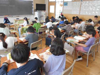 理科ではモンシロチョウについて学習をしています。子供たちは「どれだけえさを食べるのかな」「どんな育ち方をするのかな」など、調べたいことをがたくさんあるようです。これからどんどん進んで調べていってほしいです。