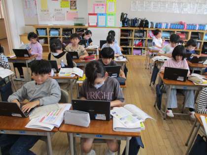 社会科では、富山県の地形や交通網について学びました。「県外から来る人に富山県の特徴とそのよさを伝えよう」と子供たちに投げかけ、まとめ活動をしています。これまで学んだことを生かして、オリジナルの紹介文を一生懸命考えていた子供たちでした。
