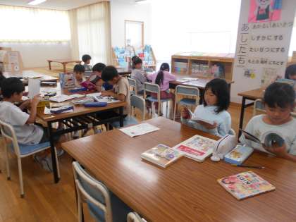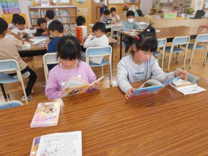 図書室にはたくさんの本があります。子供たちは、毎回どの本を借りようか、目を輝かせて選んでいます。読んだ本は、「読書マラソンカード」に記録をしています。1学期で何冊の本と出会えるか、楽しみです。