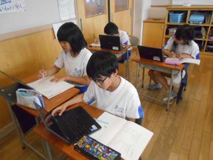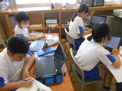 理科の学習では「体のつくり」について学習しています。この日は、人間の体の中で骨や筋肉がどのようにつながっているかクロムブックを用いて調べました。