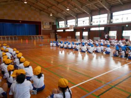 今日は体育館で団体競技の練習をしました。他の団に負けないようにどの団も一生懸命に取り組んでいました。