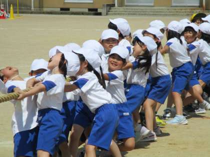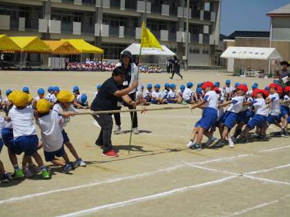 昨日予定していた綱引き予選が雨でできなかったため、本日5時間目に、綱引きの予選を行いました。子供たちは、声をそろえて、力一杯綱を引いていました。運動会当日は、赤団対青団で3位決定戦、白団対黄団で優勝決定戦を行います。