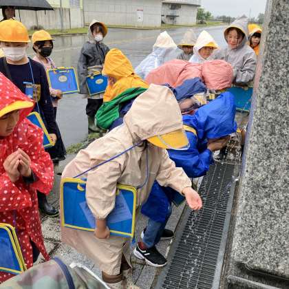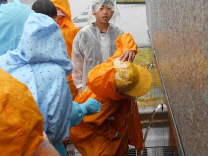 浄水場での様子です。きれいになったばかりの美味しい水を飲みました。