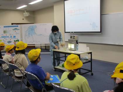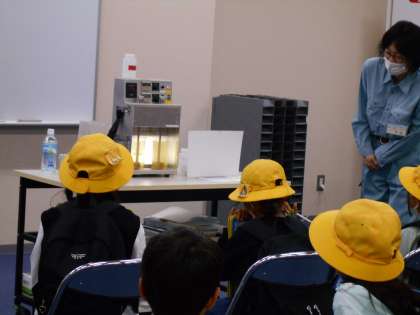 浄水場では、水がきれいになる仕組みを目の前で実演してもらいました。思わず声をあげながら見入っていました。