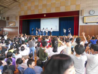 今日は、全校集会でした。全校で、ゲームをしたり、歌ったりして楽しみました。