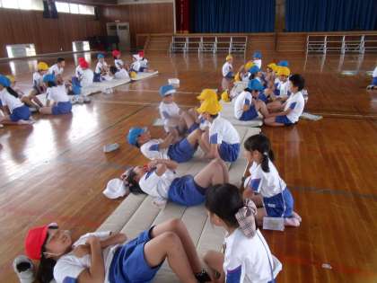 今日の体育は、体力テストを行いました。上体起こしでは、去年よりもいい記録が出たと喜ぶ姿が見られました。