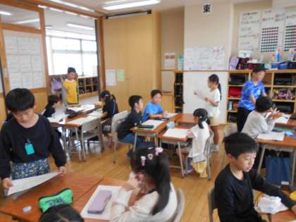 国語科「もっと知りたい、友だちのこと」の学習で、自分の知らせたいことを話してします。話を聞いた子供たちは、自分の聞きたいことを考え、色々な質問をしていました。