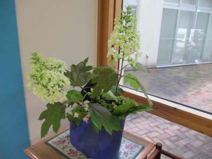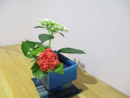 玄関の花にあじさいが飾られました。6月になったのだなと感じます。生けられた花から季節を感じられることがうれしいです。松岡様、いつもありがとうございます。