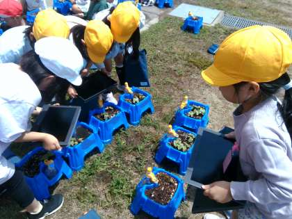 アサガオの成長をクロムブックのカメラで写真に取りました。少しずつクロムブックの使い方にも慣れてきたようです。