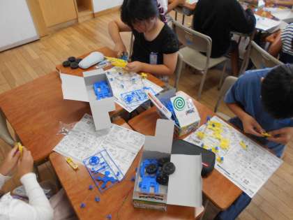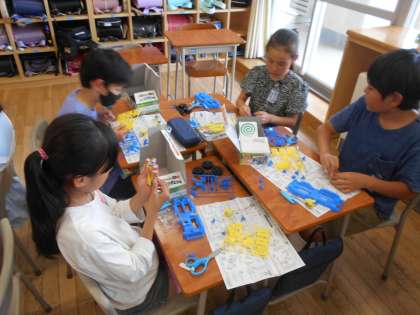 理科では「電気のはたらき」の学習でモーターカーを作っています。「早くプロペラを動かしたい」と言いながら、グループで協力して活動していました。