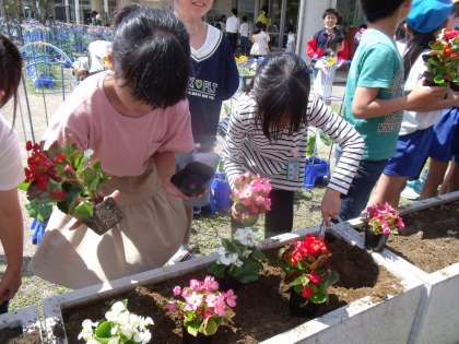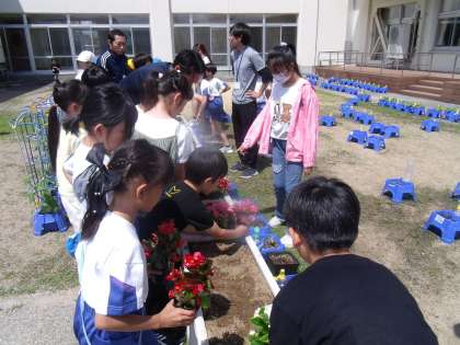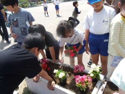 今日の大休憩に花の苗植えを行いました。きれいな花でいっぱいの藤ノ木小学校になるといいですね。