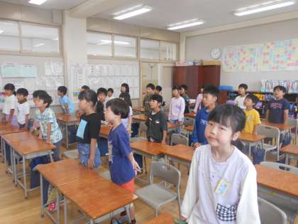 朝の歌の様子です。毎月、決まった歌を歌っています。今月は「世界がひとつになるまで」です。朝に歌を歌って気持ちよく一日が始まっています。
