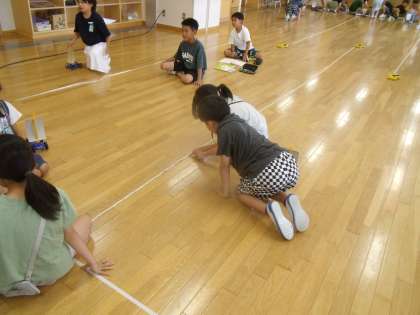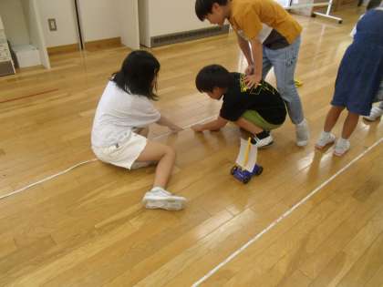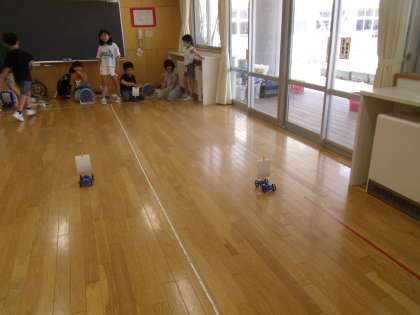 風の強さによって動き方がどう変わるのか、実験で調べました。初めての実験で戸惑うところもありましたが、友達と協力して結果を記録していました。