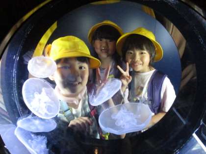 午後からは、魚津水族館に行きました。子供たちは、海の生き物に興味津々でした。