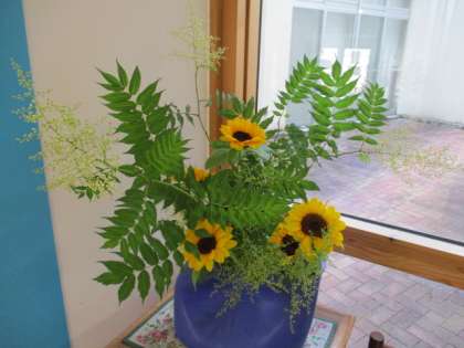 玄関の花にも夏の代表花「ひまわり」が飾られました。