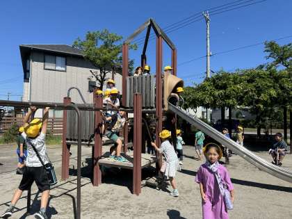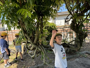 総合の学習で藤ノ木の宝を探し、発信する学習をしています。今日は、実際に自分たちの選んだコースを歩き、どんなものがあるか見に行きました。「公園にはいろいろな遊具があるな」「このラーメン屋さん行ったことある。ワンタンメンが美味しいよ」など、自分の経験と重ねながら藤ノ木のよさを感じていました。