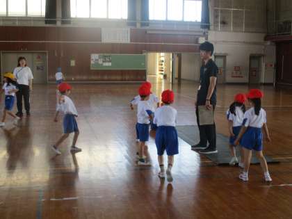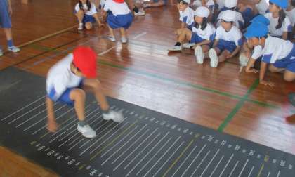 今日は、スポーツテストで立ち幅跳びを行いました。一生懸命腕を振って遠くまで跳んだり、友達同士応援したりする姿が見られました。