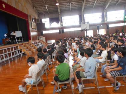 3時間目に音楽コンサートがありました。エレクトーンや鍵盤ハーモニカによる演奏を聴いたり、みんなで校歌を歌ったりしました。今流行っている曲や子供たちに人気のテーマパークの曲等たくさんの演奏を、手拍子をしたり体を揺らしたりして楽しみながら聴いていました。