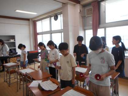 ハンドベルクラブでは、「星に願いを」の練習をしています。トーンチャイムやハンドベルを使い、綺麗な音色を奏でることができるようになってきました。2学期は、もう少し難しい曲にも挑戦したいととても意欲的です。