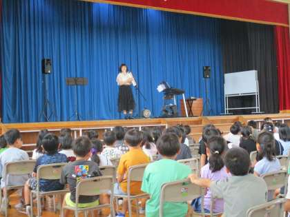 3時間目に中学年の音楽コンサートがありました。子供たちは、手だけではなく足も使うエレクトーンに圧倒され、またよく知っている曲に興奮気味の様子でした。ジャンボールミッキーでは、手拍子をして曲にのったり、ブリンバンバンボンでは、口ずさんでいる子供が多くいました。あっという間の45分間でしたが、楽しいひとときを過ごすことができました。