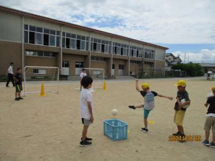 運動委員会の企画「藤っ子スポーツまつり」に参加しました。ハードル走やサッカーのシュート等、体を動かして楽しんでいました。