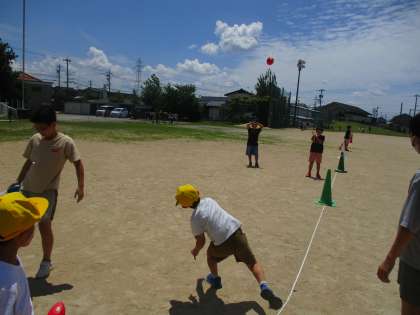 今日は、運動委員会主催の「スポーツまつり」でジャベリックボール投げやハードル走、サッカーゴールにシュート等を行いました。身体全体を使って楽しんでいました。